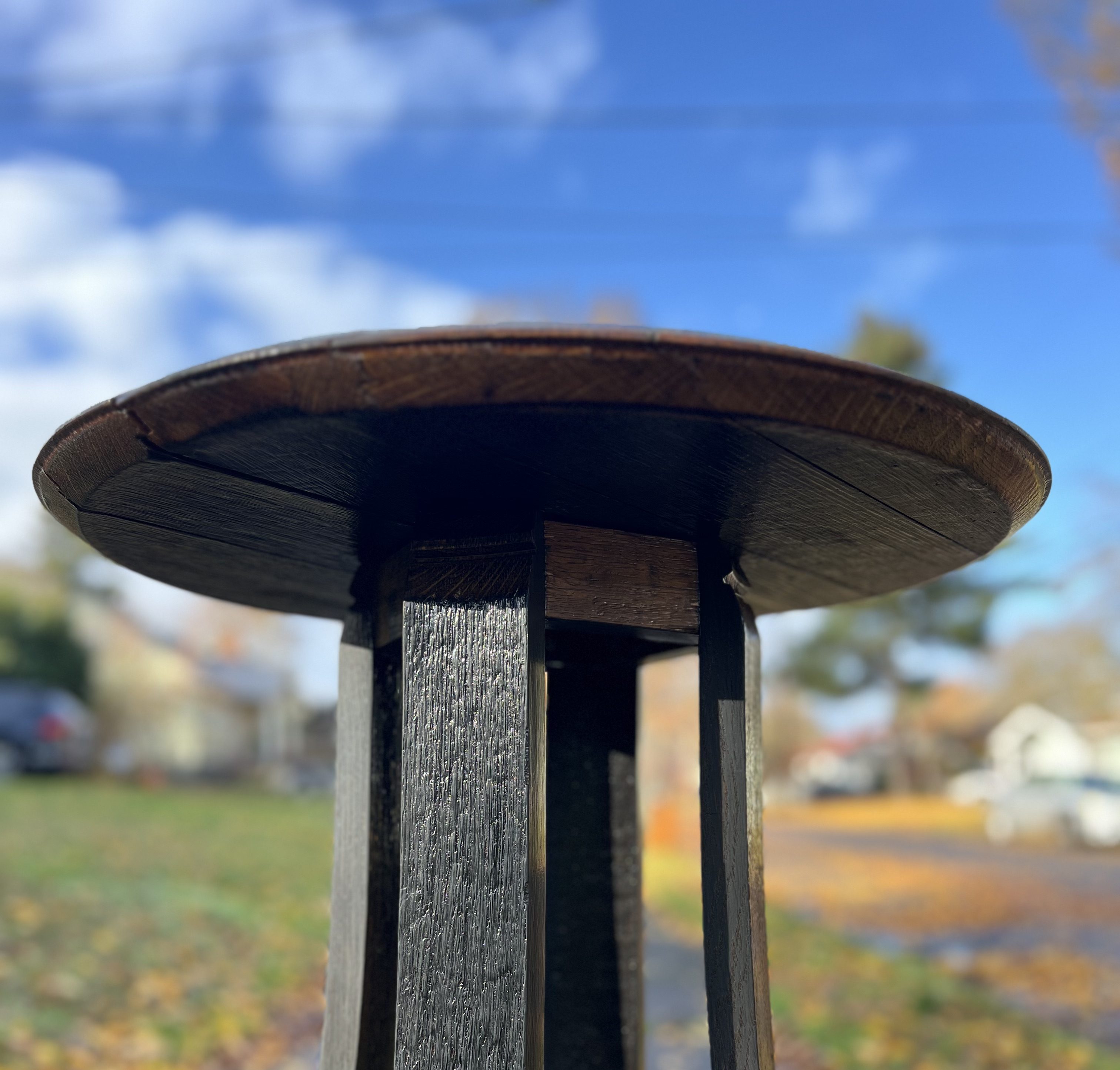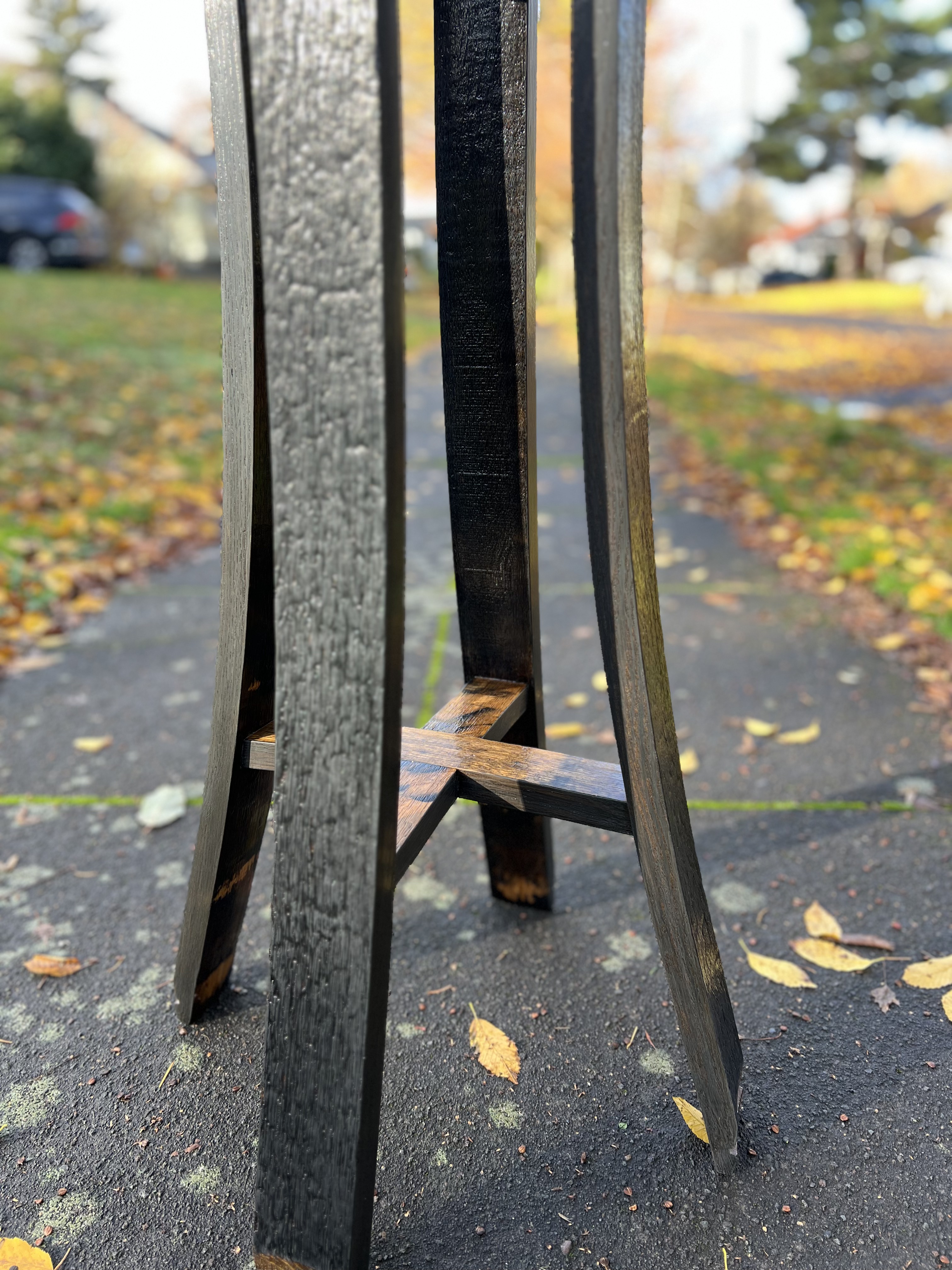 i worked on this table as a member of the guild of oregon woodworkers project build group. i modified the design and diverged from the original inspiration photos to create a more elegant table profile. other than the miters on the table aprons, all the joinery was done entirely by hand, with dowels to hold the stretchers in place. the cut faces were ebonized to match the dark charred interior of the barrel.